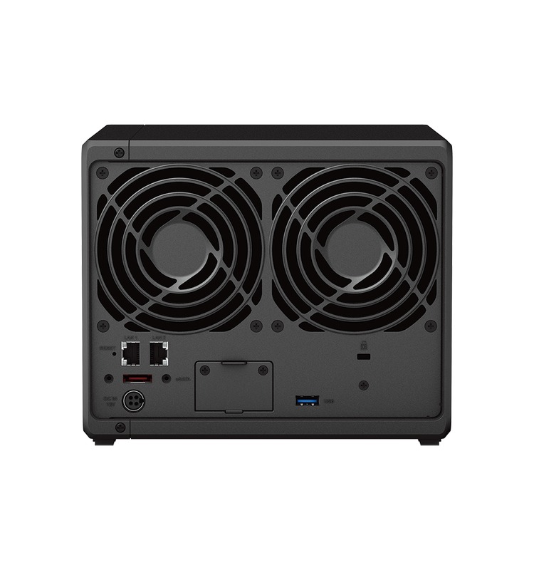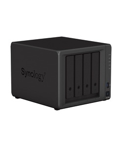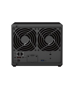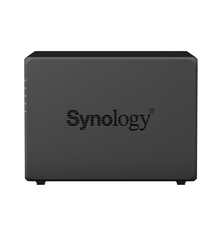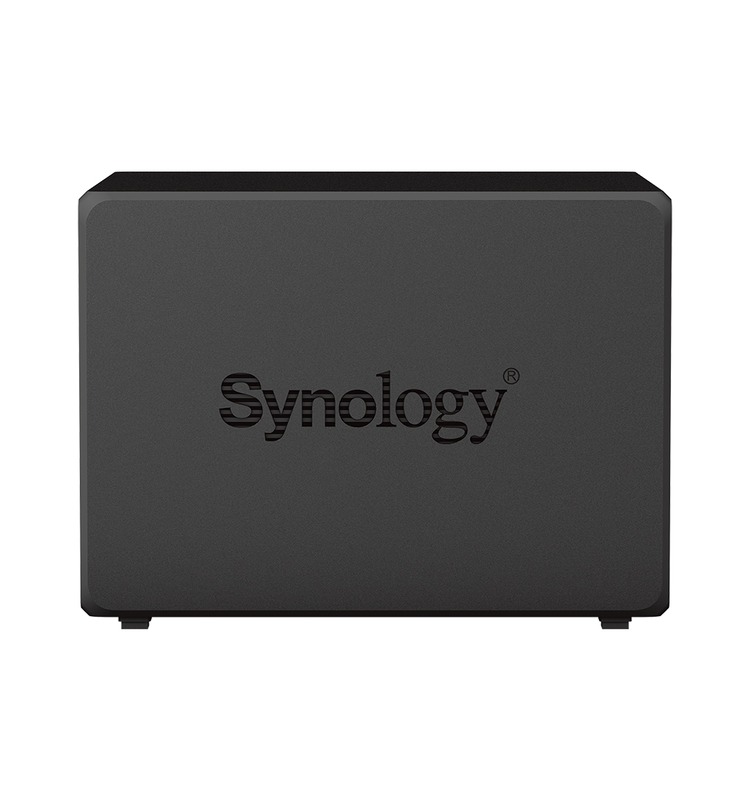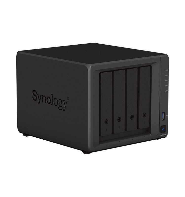 This network-attached storage system from Synology supports up to four 3.5-inch hard drives (HDDs) in a variety of RAID modes for redundancy and increased performance. It can connect to your network via built-in 1GbE ports or an optional 10GbE add-on NIC. There are also two M.2 slots for solid-state drives (SSDs) which can be used as high-speed cache for the main drive array.