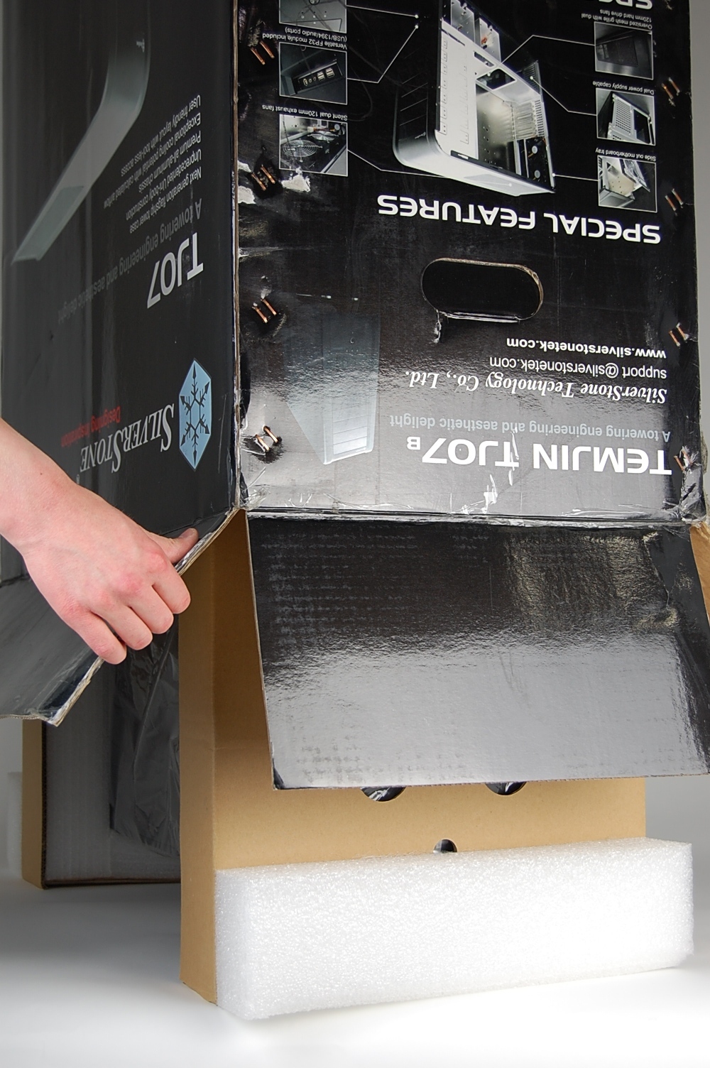 Turn box over to the upright position (the front of the computer should be facing up).