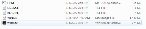 The next part of making your key bootable involves deciding which OS to base it off of. For me, the choice was simple. I want the one that just seems to work with everything. Surprised as you may be, this turned out to be Windows ME. I'll spare you the details, just go with this one. The easiest place to find this is here at bootdisk.com. Under "Non-Windows Based Image Files W/ImageApp" click "WinME" and download it into a new folder named "WinME" in your working directory.