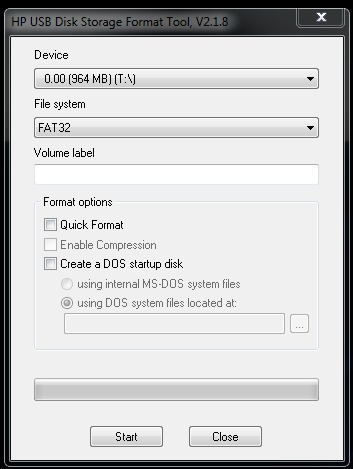 The method I recommend has, at least for me, proven to be the simplest of many methods available. There's no scripts or DOS commands to use, just point and click. HP at some point in time made a great utility for creating bootable media. It's called "HP USB Disk Storage Format Tool – v2.1.8" and it will soon be your best friend. Before doing anything else, I recommend making a folder, preferably on your C drive and label it something like "USB". This will be your working folder which will help you stay organized. The easiest place to find this HP utility is on CNET or simply click here. Save it to your newly created folder and run the installer. I believe it will load a shortcut onto the desktop which you may want to copy to your new working folder for ease of access.