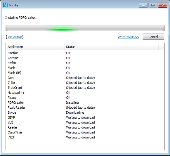 Ninite goes about its business in the background installing the programs to their default locations. Ninite doesn’t push any extra trial software or toolbars on your either.