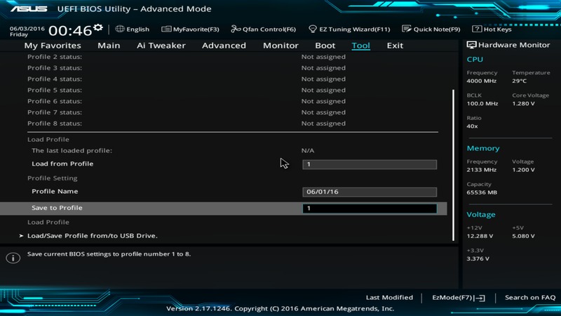 Click save to profile 1. This will allow the change you made to be automatically reapplied should you ever have to load BIOS defaults. Now press F10 and click yes to save/apply all changes made.