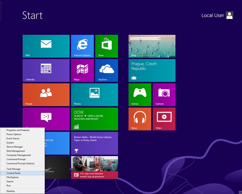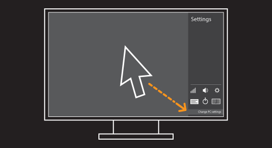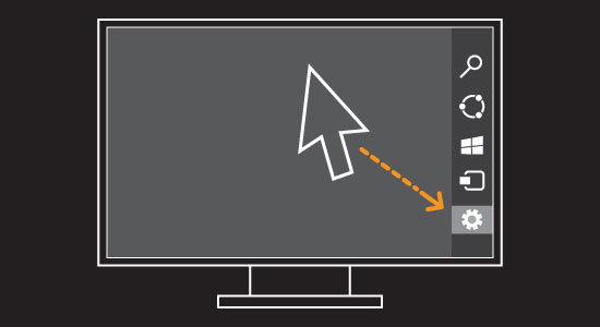 | Move the cursor to the top-right corner of the screen | Click on the Settings icon on the charm bar |