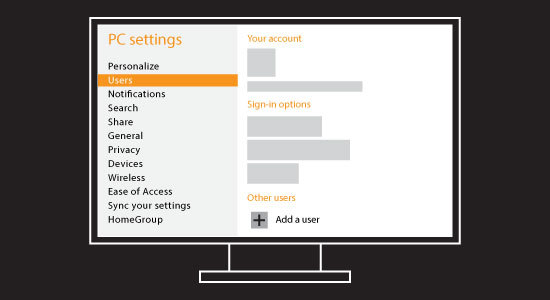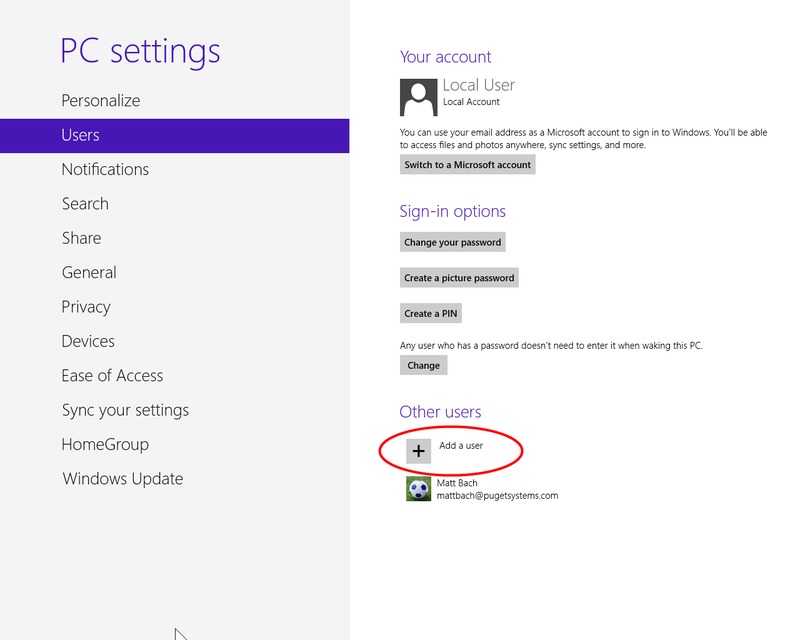 | Click on "Change PC Settings" | Click on "Users" |