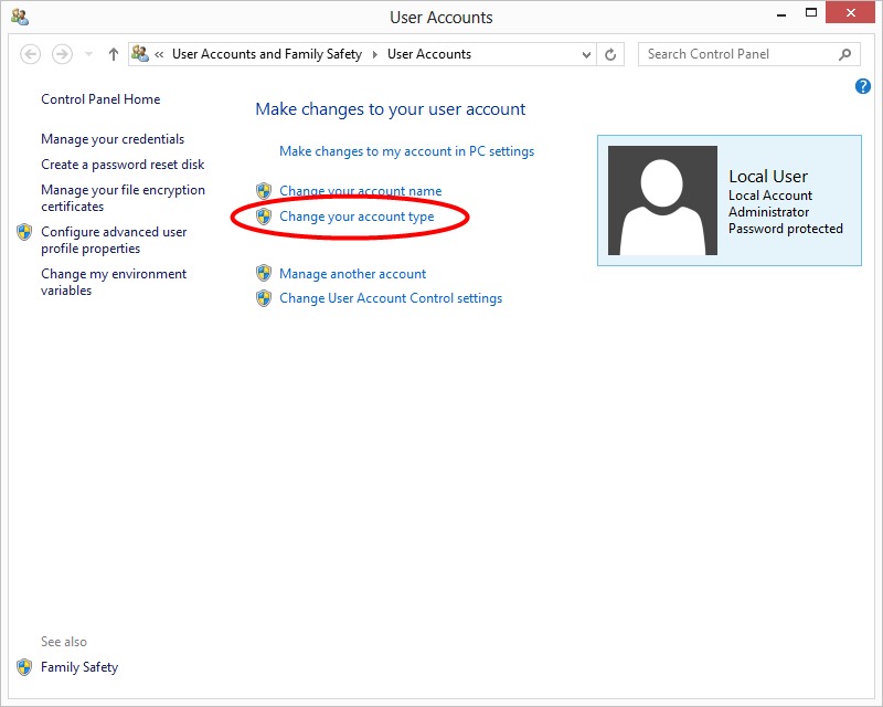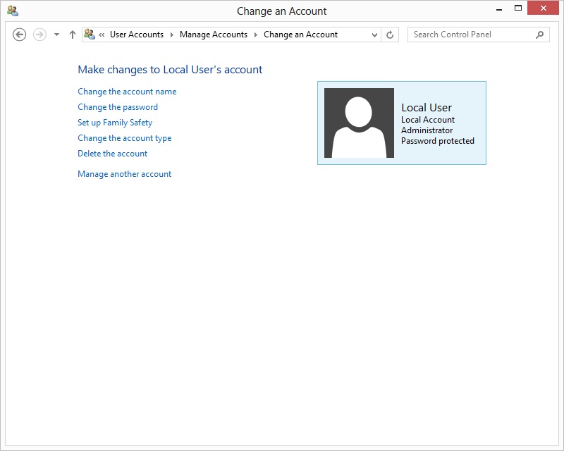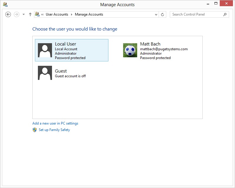 To help you get right to what you want to do, we are going to provide quick links to allow you to get right to what you want to achieve. If you jump directly to a link, be sure to first visit either the Accessing Start -> PC Settings, Accessing Control Panel -> User Accounts, or Accessing Control Panel -> Manage Accounts to first find out how to get to the location the link is referencing.