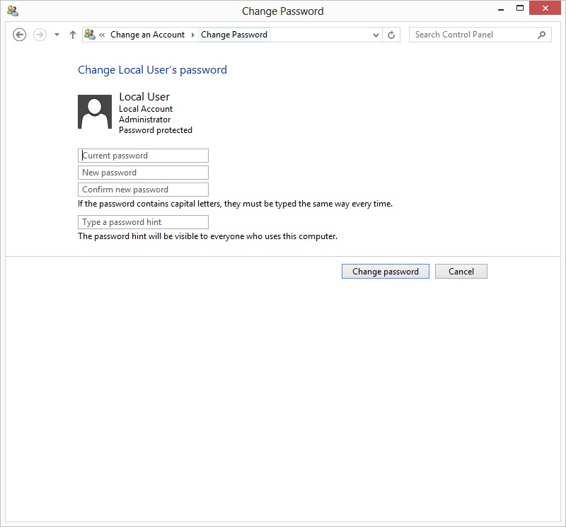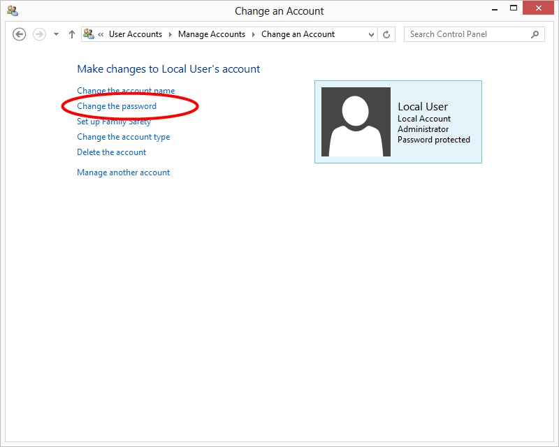 | Add/Remove/Change Password: To change the account password, click on "Change the password" and input the desired password. Note that if you are using a Microsoft account, this option is not available. To change the password of a Microsoft account, you need to log in to your Microsoft account and change the name online. | ||