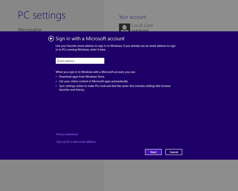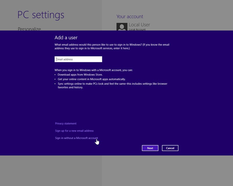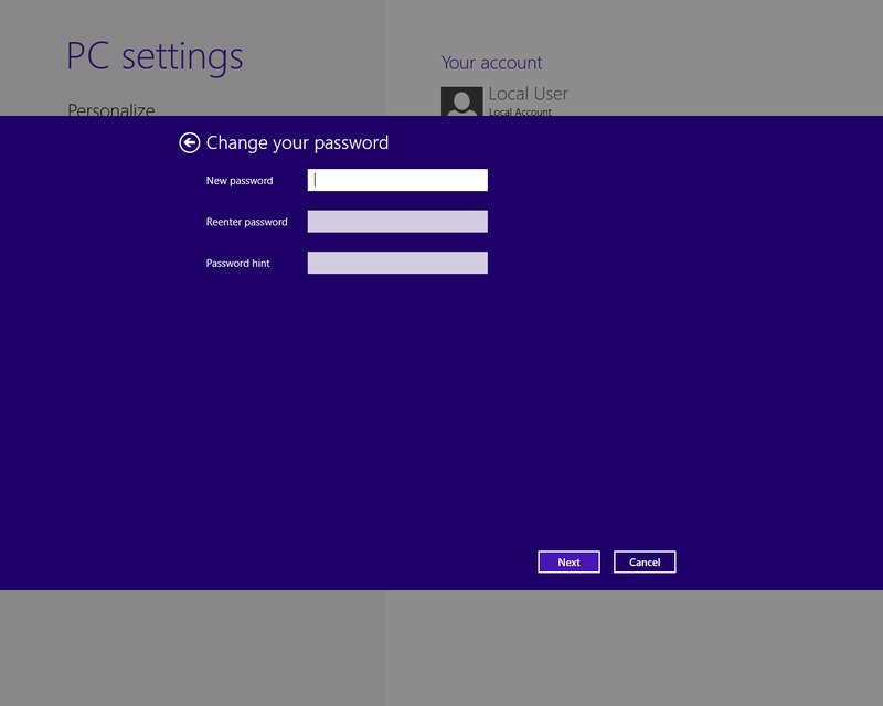 *Local accounts only. Microsoft account setting can be changed through online account settings