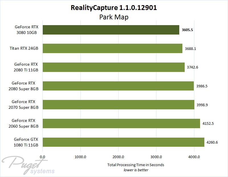 Summary: The RTX 3080 is a solid video card choice for Pix4D, but if you already have a high-end 10- or 20-series GeForce card then there probably isn't a reason to upgrade for this application. Most of the recent cards in the $400+ price range will give similar results.