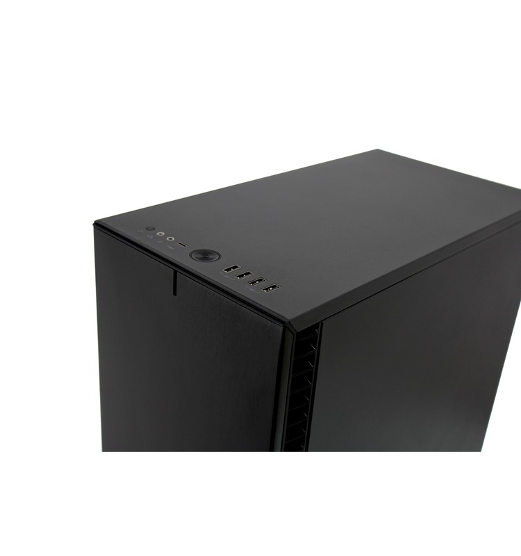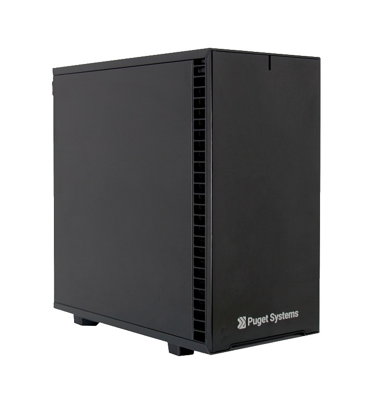 This system is built in the Fractal Design Define 7 Mini case, which has USB and audio ports along the top front edge. The motherboard’s rear I/O panel provides more USB ports, a surround sound audio output, and both Ethernet and WiFi for networking. Space is somewhat limited in a chassis this size, but several options are still supported – including various high-end video cards, up to 192GB of memory, and multiple solid-state and hard drive configurations. There are also plenty of fans to keep components cool, with filters over the air intakes to reduce dust buildup.
