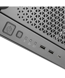 Three USB ports, including one Type C, are located on the front – while the motherboard’s rear I/O panel provides additional USB, audio, and networking. There is a lot of space internally, supporting a wide range of options including multiple video cards, up to 1TB of RAM, and flexible solid-state and hard drive configurations.